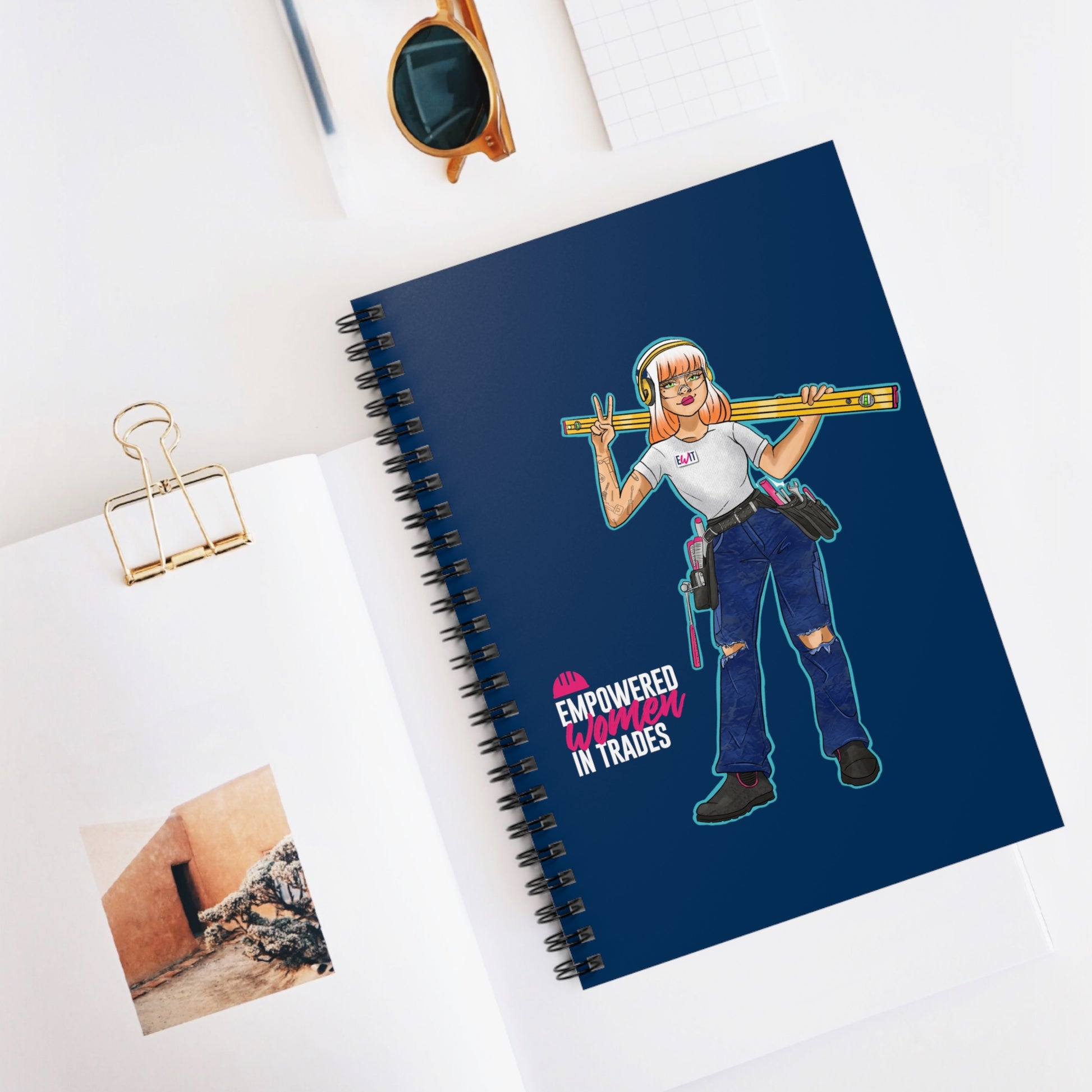 Dive into a world of creativity and inspiration with our Trade Chick x EWIT notebook. Perfect for capturing your thoughts, doodling your daydreams, or listing out those crucial tasks, this notebook is designed to be your daily muse. Its user-friendly spiral binding ensures you can flip, write, and sketch with ease, making it an essential for every tradeswoman, artist, and visionary.
