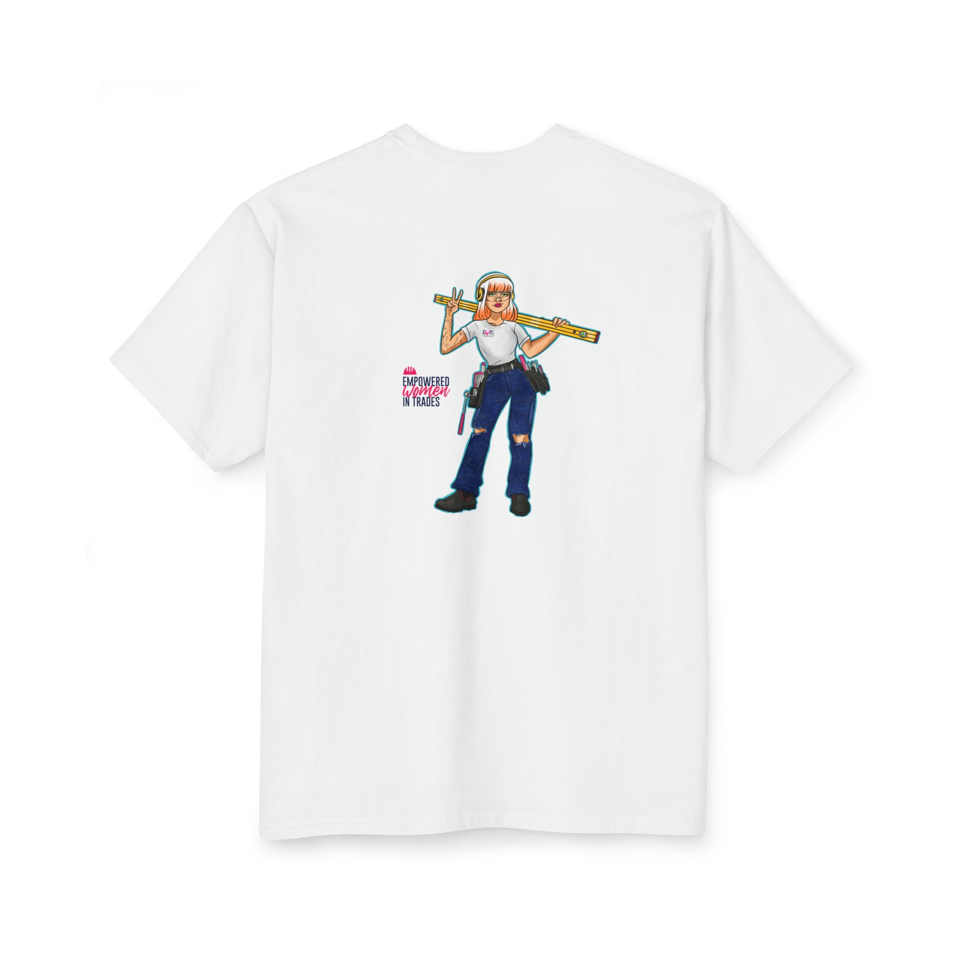 But here's where it truly shines: every time you don this tee, you're not just showcasing your unique style, but also championing a cause close to our hearts. Each purchase directly supports the Empowered Women In Trades charity, propelling vulnerable and at-risk women into the empowering realm of trades. So, while you're standing tall in style, you're also standing up for a transformative cause. Wear it, flaunt it, and be the beacon of change! 💪🌼🔧