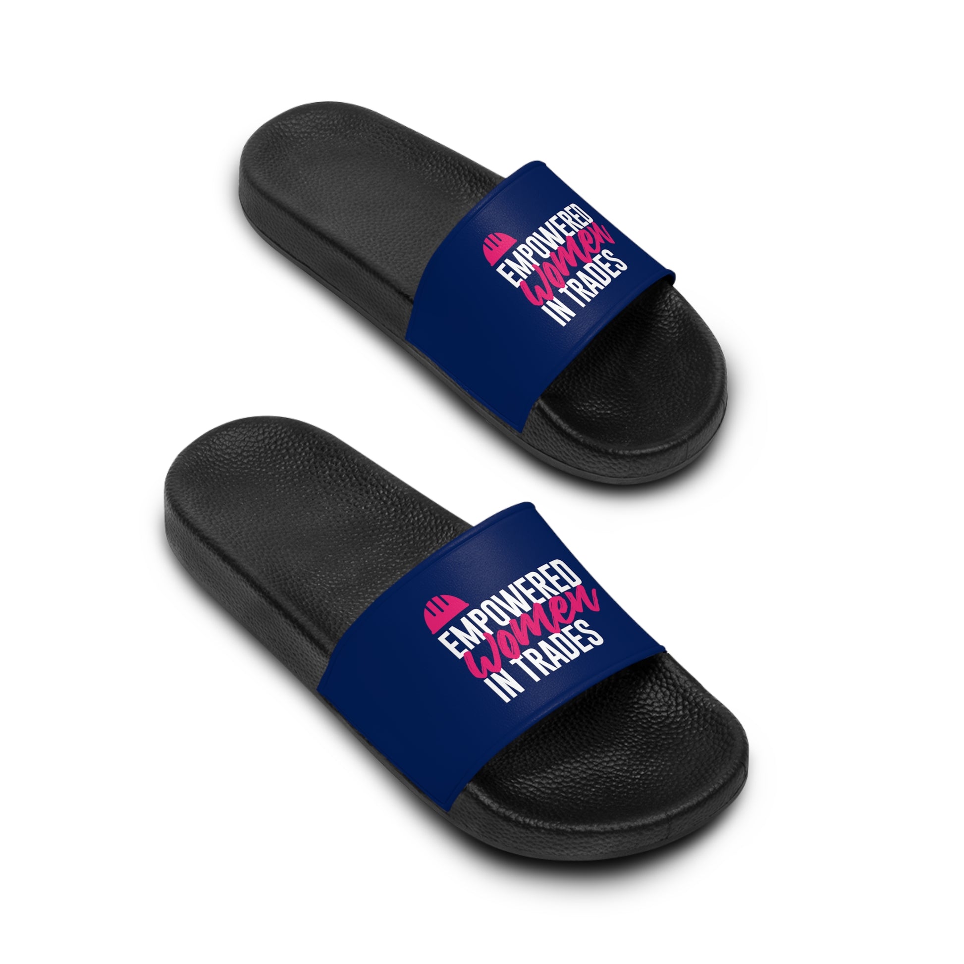 Slide into style, comfort, and a cause with our Empowered Women in Trades sildes! Whether you're shuffling around at home, hitting the beach, or just out and about, these slides are your ultimate foot buddies. Designed for the modern woman on the go, they're the perfect blend of cozy and chic.
