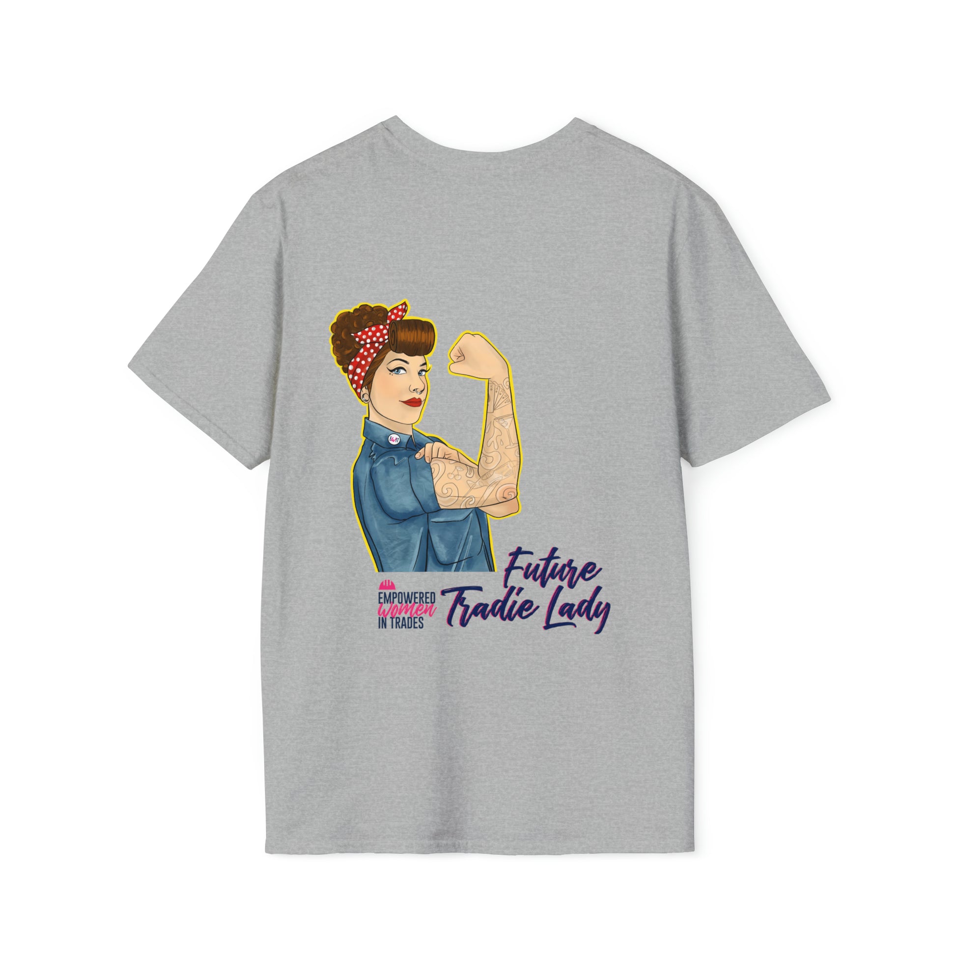Elevate your everyday look with our EWIT Future Tradie Lady Tee, where comfort meets contemporary style. Made from the finest cotton blend, with a hint of polyester in our heather variants, this unisex tee offers a snug and flattering fit for all. Our ribbed knitting ensures no more pesky curling collars, while the twill-taped shoulders add an extra layer of durability. But it's more than just a tee; it's a statement. Every purchase directly supports the Empowered Women In Trades charity, championing the journey of vulnerable and at-risk women into the trades sector. So, every time you wear this tee, you're not only flaunting your style but also fueling a mission. Stand tall and make a difference with each wear! 🛠️💖🌼