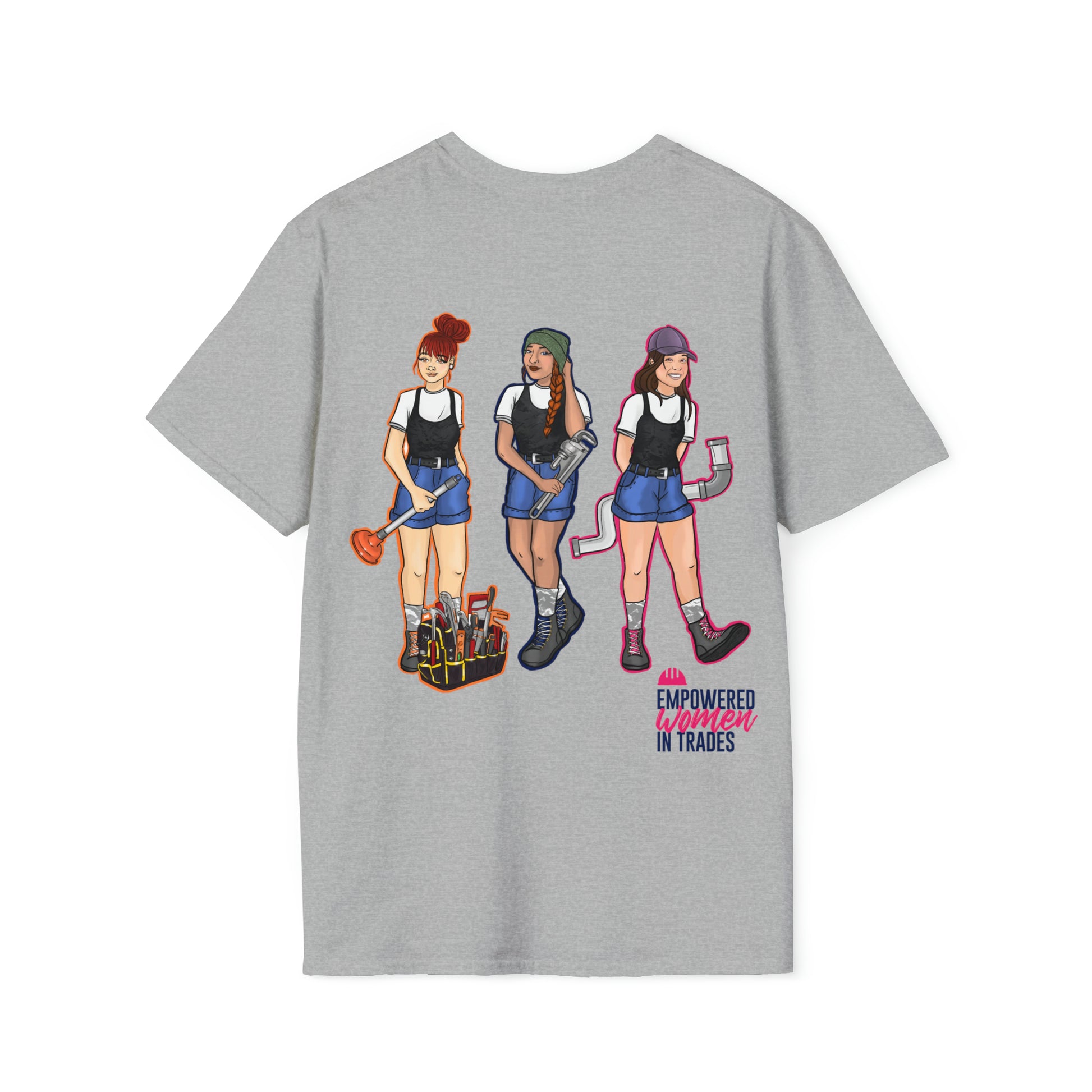 Step out in a tee that's as bold as your spirit! Our collaboration with Trade Chick brings a fresh twist to the classic EWIT Empowerment Tee. Made from the coziest blend of cotton (and a hint of polyester in our heather variants), this tee is all about comfort that lasts. Its design ensures a snug fit, while the ribbed collar stays put, keeping those pesky curls at bay. The durable twill-taped shoulders promise longevity, ensuring this tee remains a staple in your wardrobe. And here's where it gets even better: each tee you don showcases your support for the Empowered Women In Trades charity. Every wear is a nod to the mission of guiding vulnerable women into the world of trades. So, with this tee, you're not just making a style statement; you're making a difference. Rock it, advocate, and inspire! 🛠️❤️🎨