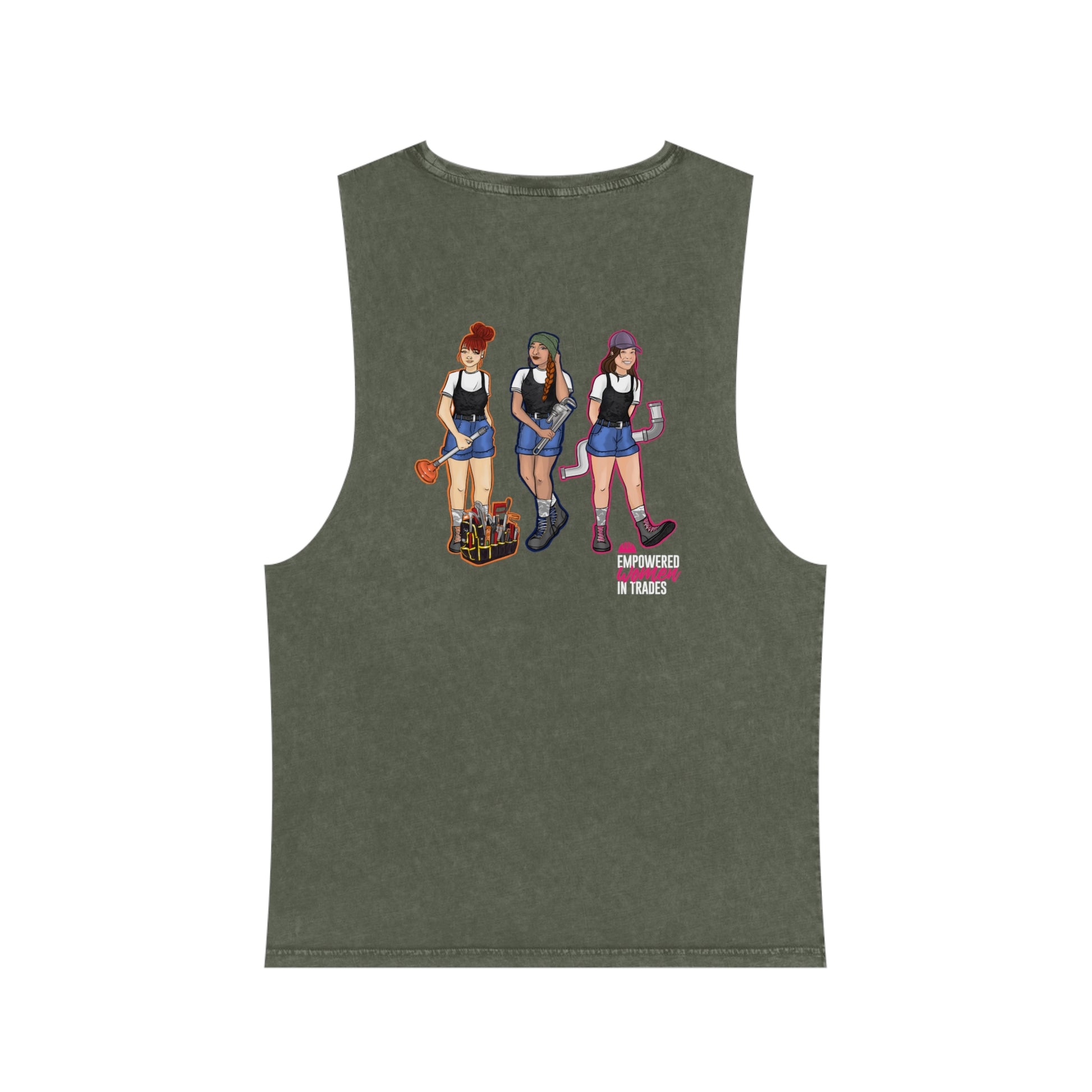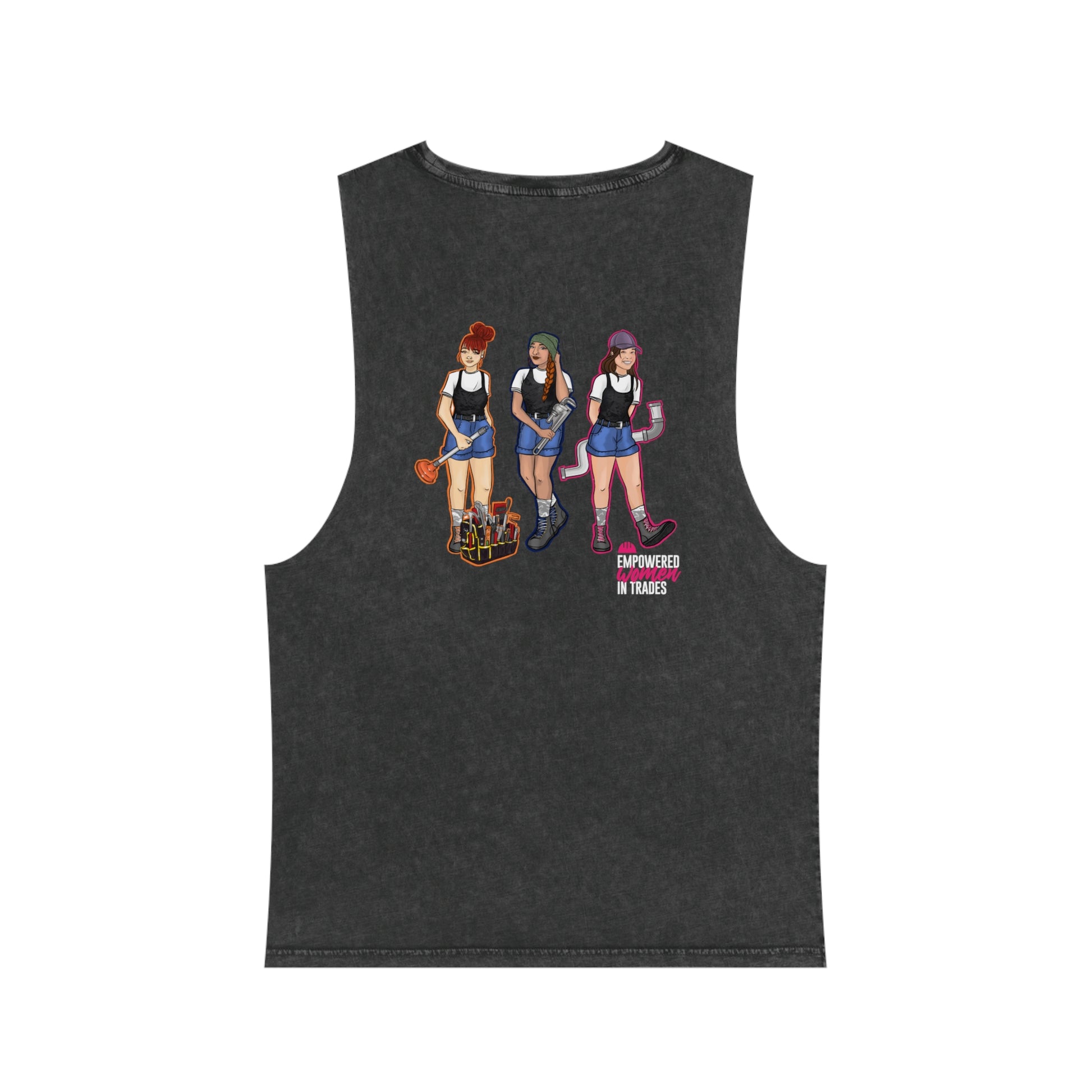 Step out in style and confidence with our Trade Chick EWIT Empowerment Tank. This isn't just any tank—it's a blend of fashion, function, and fierce determination. With its raw armhole edges and chic stonewash finish, it's designed to make you stand out and shine. But it's more than just a style statement; it's a symbol of empowerment and resilience.