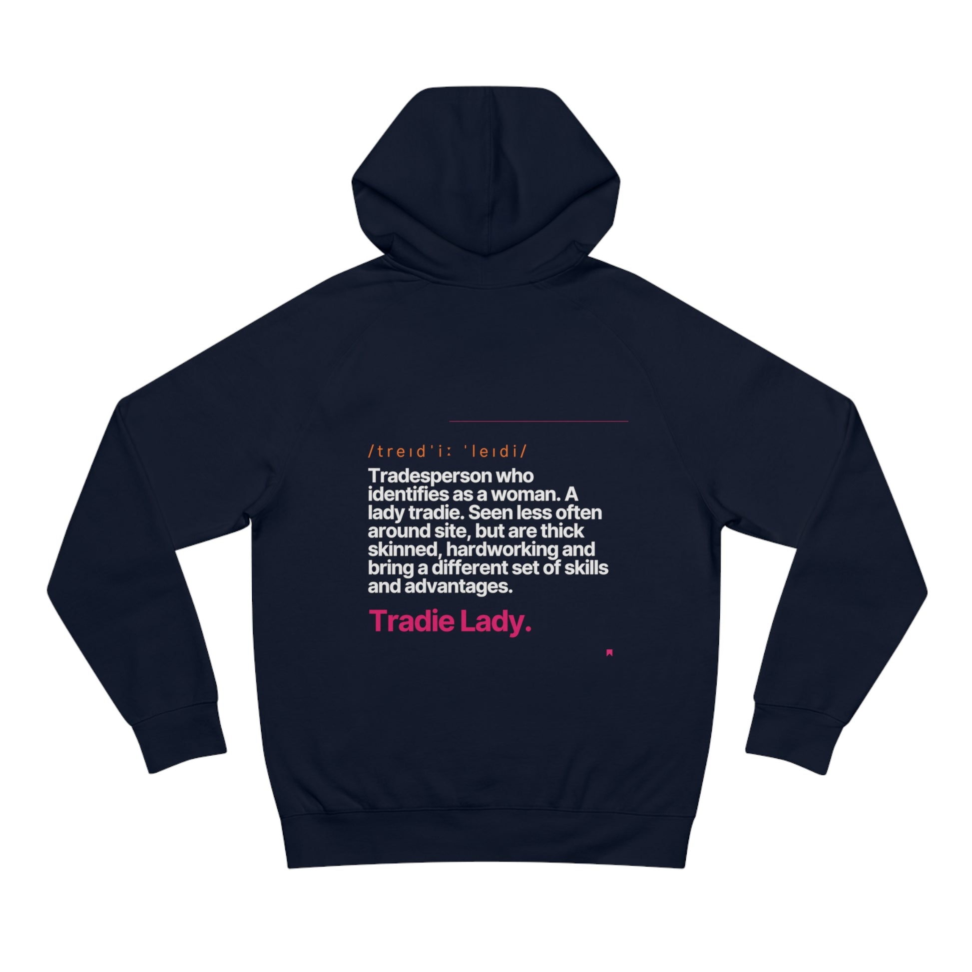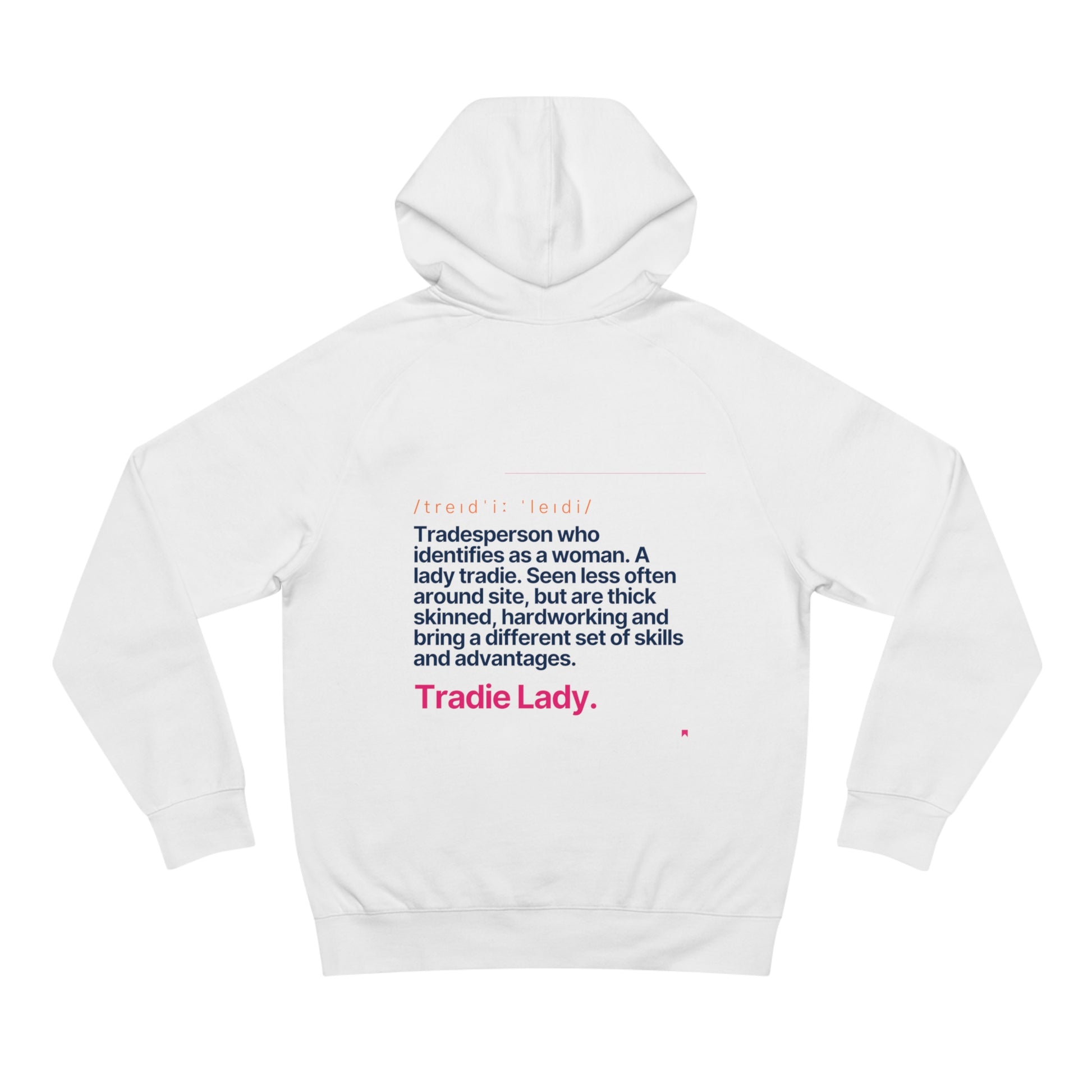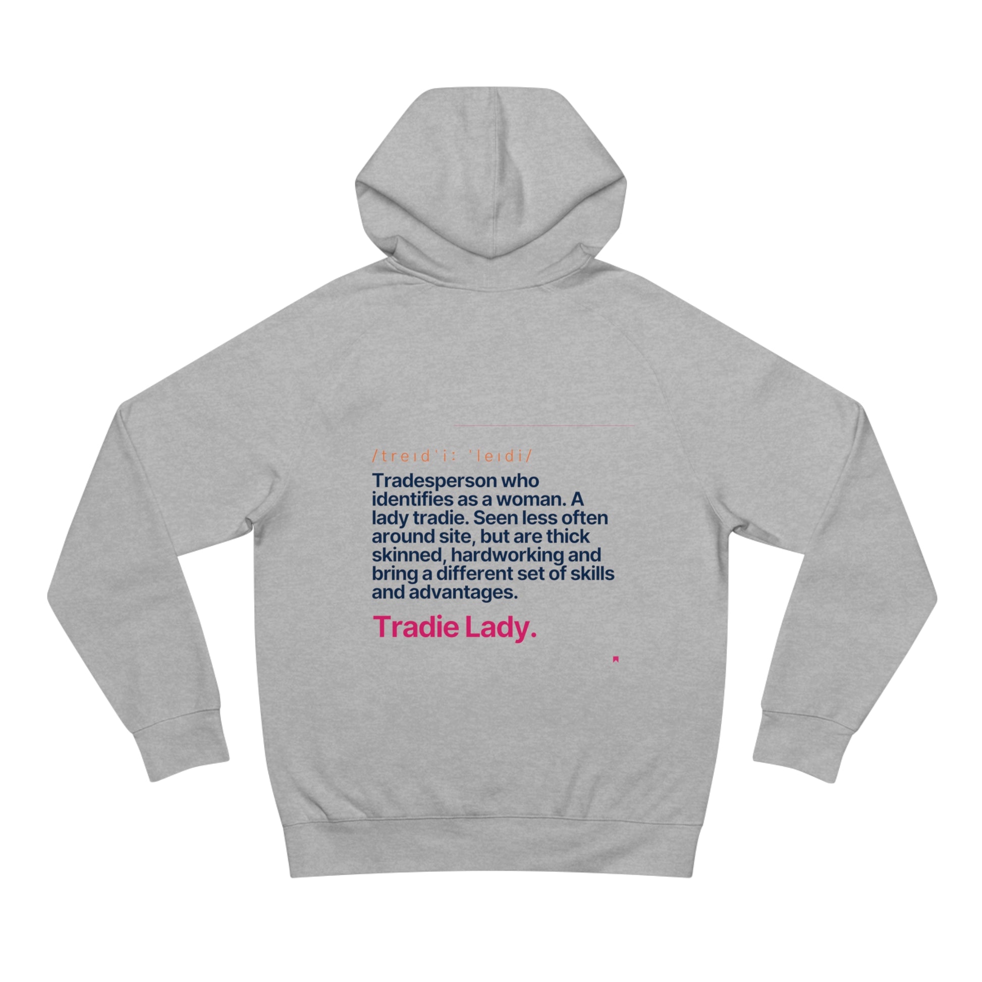 Worried about the dreaded post-laundry shrink? Fear not! Our hoodie comes pre-shrunk, ensuring it stays your perfect fit, wash after wash. And let's not forget the star of the show: the empowering 'Tradie Lady' definition, making every wear a proud proclamation of strength and resilience of tradeswomen everywhere!